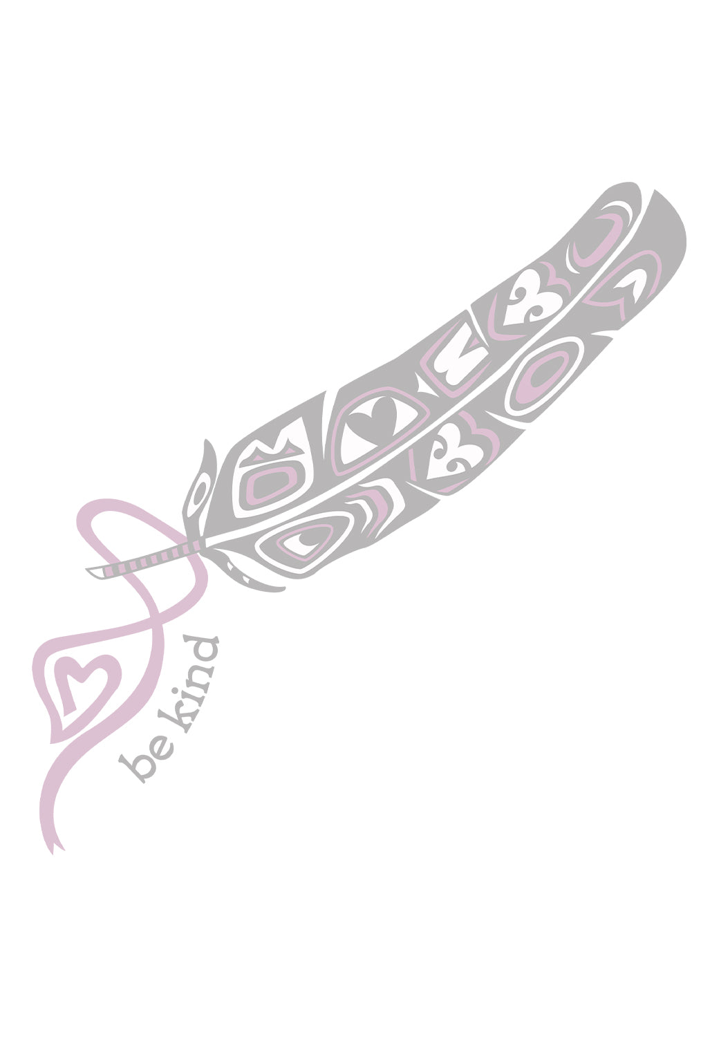 "I am a part of the Oromocto First Nation Community in New Brunswick on the east coat of Turtle Island and recently reunited with the other side of my family who originates from Victoria, British Columbia on the west coast. I chose the feather design after getting to know my Grandfather from the Shell Beach community of Stz'uminus First Nation.