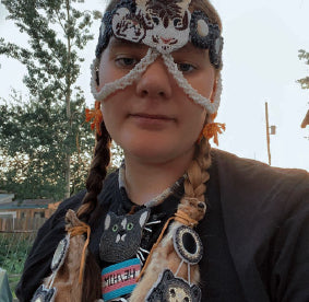 Aiden is a Cree two-spirit artist from Manitoba who moved to the Yukon to work in conservation and to share Indigenous knowledge. Aiden incorporates Indigenous knowledge sharing and practices through art, dance, and storytelling. His spirit name is ka mâhmâsinasohkôhow, which means "spotted owl" in Cree.